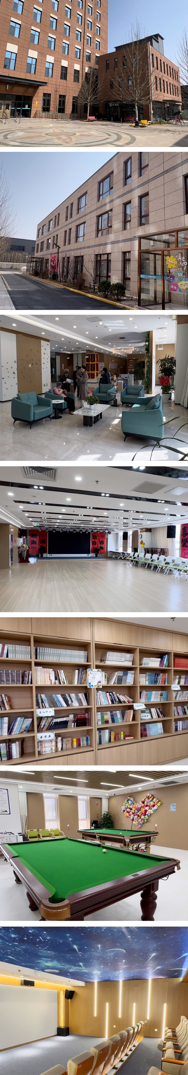 院内适老设施完善,公共服务配套有营养餐厅、休闲区、多功能活动室、棋牌室、老年学堂、电影放映厅、台球厅、图书馆、电脑上网服务台、户外休闲角、老年健身区等。 专业社工团队、鼓励社会交往、定期举办节庆联欢、生日会、舞会、多种老年课程、老友聊天、看报阅读、健身、观鸟、赏花。 支持实现自身价值观丰富多彩美好生活,养老居住区房间宽敞明亮,室内装修温馨典雅,设有标准单人间、大面积双人间、配备长者舒适床铺、采用环保家具、独立卫浴、提供24小时热水、紧急呼叫全覆盖。 康养中心由七栋楼组成,社区配套医疗中心依托内部优势医护资源建有康复大厅,配备各类康复设备,专业医师和康复师提供多项康复理疗服务,支持医保实时结算。护理服务由专职医生、康复师、护士和护理员组成,提供多维度全时服务,三餐由专业厨师和营养师根据长者饮食习惯,荤素搭配粗细均衡,科学合理满足需求同时不失色香味。