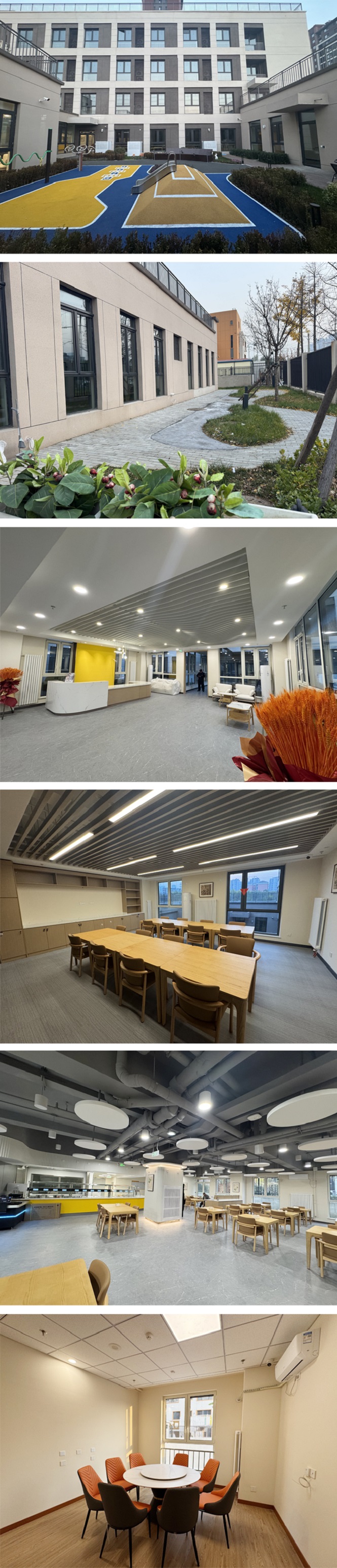 采用适老化设计:防滑地胶、扶手家具、无锐角器具全覆盖,搭配防眩光照明、卧室起夜灯等智能配置;内庭院分设“国医养生区”(中草药种植、按摩步道)与“代际互动区(儿童游乐空间),兼顾健康与情感需求。 分层设置护理站、助浴间、楼层餐厅,针对认知症长者打造“记忆互动长廊“五感花园” 缓解症状并激发自主活动能力。 医养方面距离机构约200米直达社区卫生服务中心,3.5公里内覆盖首都医科大学附属北京友谊医院(三甲)、北京安贞医院通州院区(心血管特色)等多家医保定点医疗机构,医养融合更安心。