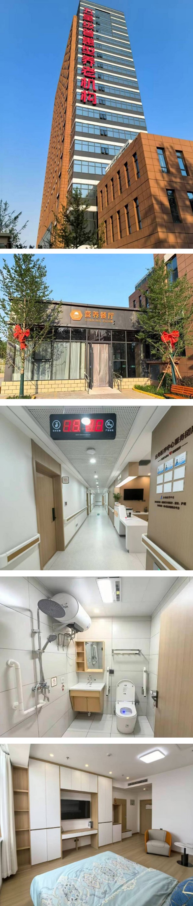 院内适老设施完善,公共服务配套有营养餐厅、休闲区、多功能活动室、棋牌室、老年学堂、电影放映厅、台球厅、图书馆、电脑上网服务台、户外休闲角、老年健身区等。 专业社工团队、鼓励社会交往、定期举办节庆联欢、生日会、舞会、多种老年课程、老友聊天、看报阅读、健身、观鸟、赏花。 支持实现自身价值观丰富多彩美好生活,养老居住区房间宽敞明亮,室内装修温馨典雅,设有标准单人间、大面积双人间、配备长者舒适床铺、采用环保家具、独立卫浴、提供24小时热水、紧急呼叫全覆盖。 康养中心由七栋楼组成,社区配套医疗中心依托内部优势医护资源建有康复大厅,配备各类康复设备,专业医师和康复师提供多项康复理疗服务,支持医保实时结算。护理服务由专职医生、康复师、护士和护理员组成,提供多维度全时服务,三餐由专业厨师和营养师根据长者饮食习惯,荤素搭配粗细均衡,科学合理满足需求同时不失色香味。