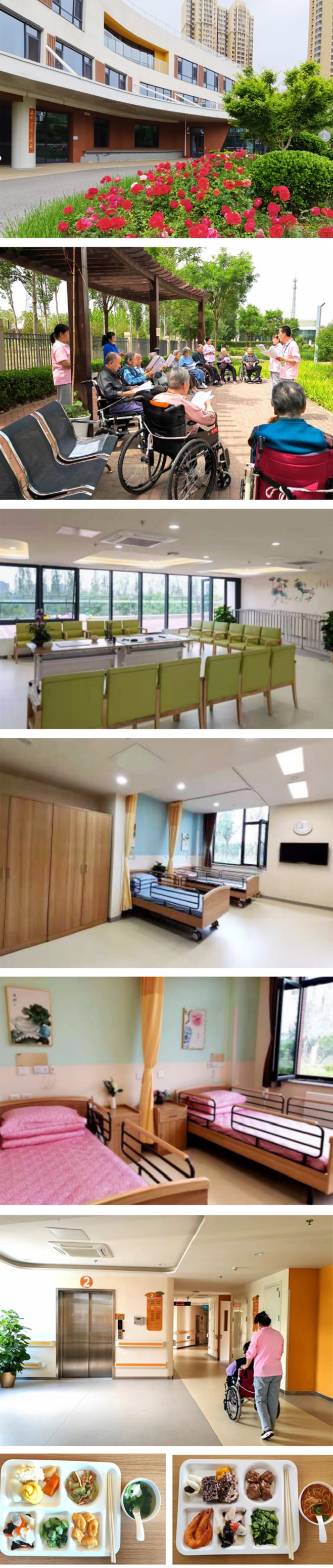 老人房间内全部采用高品质 ——中心房间设施绿色环保家具;并配有知名品牌电动护理床、床头呼叫器、卫生间适老化设施等一应俱全。同时公区设有多功能大厅、阳光交流区、休闲娱乐室及屋顶花园等,长辈在此尽享天伦之乐。 中心设有两个院落环境 ——前庭花园长廊、后院漫步缓道。长辈们闲庭信步在此,或休憩沐浴阳光、或缓行即兴赋诗一首,真的是好不惬意,好不欢畅。 中心开展文娱活动丰富多彩 ——日常活动、节日活动、长者生日贯穿始终。长辈们在此真正享受“老有所养,老有所乐”的晚晴生活。 中心提出了“科学营养、适老膳食” ——对膳食营养做科学搭配。同时也会根据一年24节气推出养生菜品,让长辈时时能吃到不一样的新鲜感。 详询机构