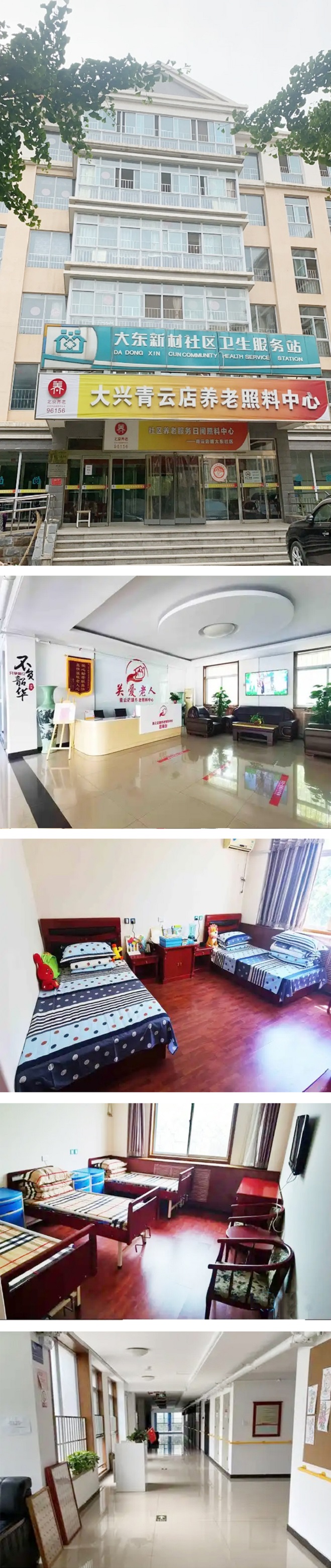 北京市大兴区青云店镇养老照料中心,总建筑面积约5000平米,设有养老床位150张,将机构养老、社区养老及居家养老融为一体,是为长者提供持续照护的医养结合服务综合体。